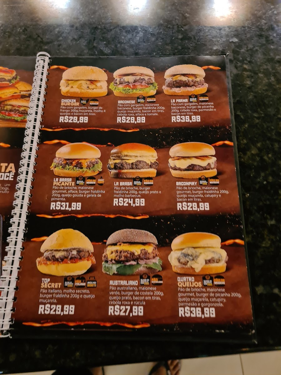 The menus offer a diverse selection including indulgent combos like "Combo lá Brasinha," which features a burger, fries, and a beverage. The Australian burger, with its crispy bacon strips, stands out as a must-try. While prices may exceed expectations, the quality and variety make it worthwhile.